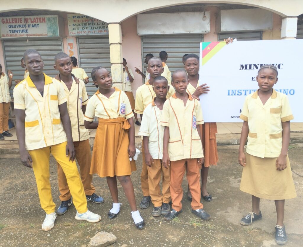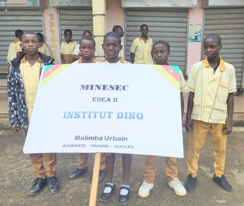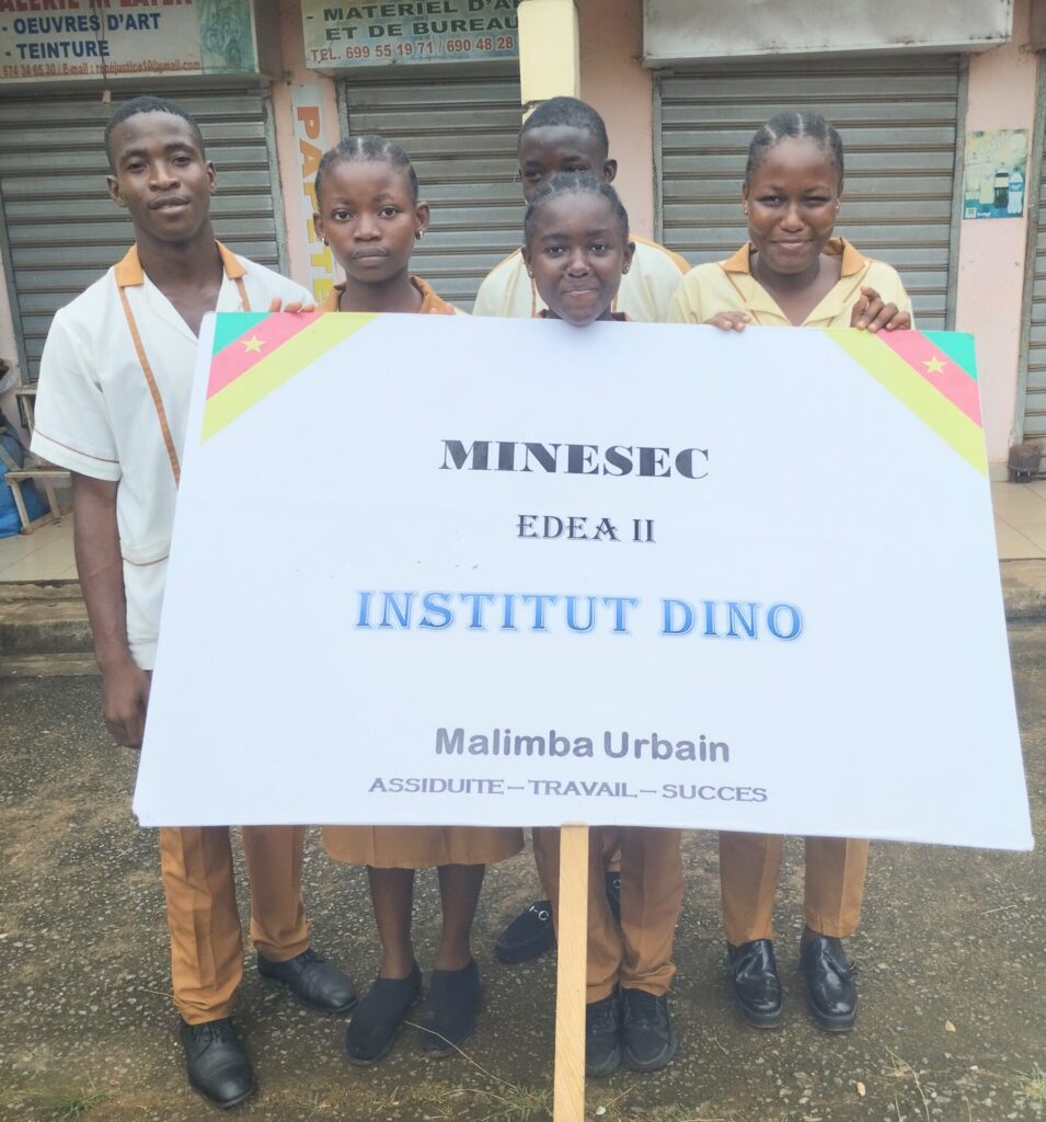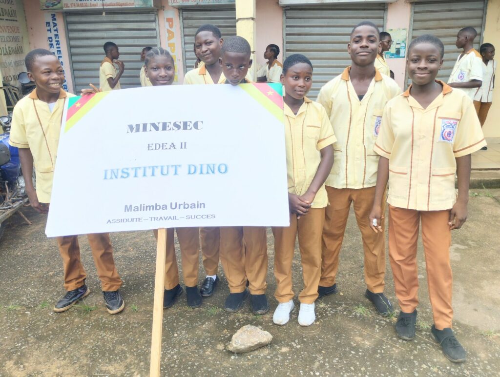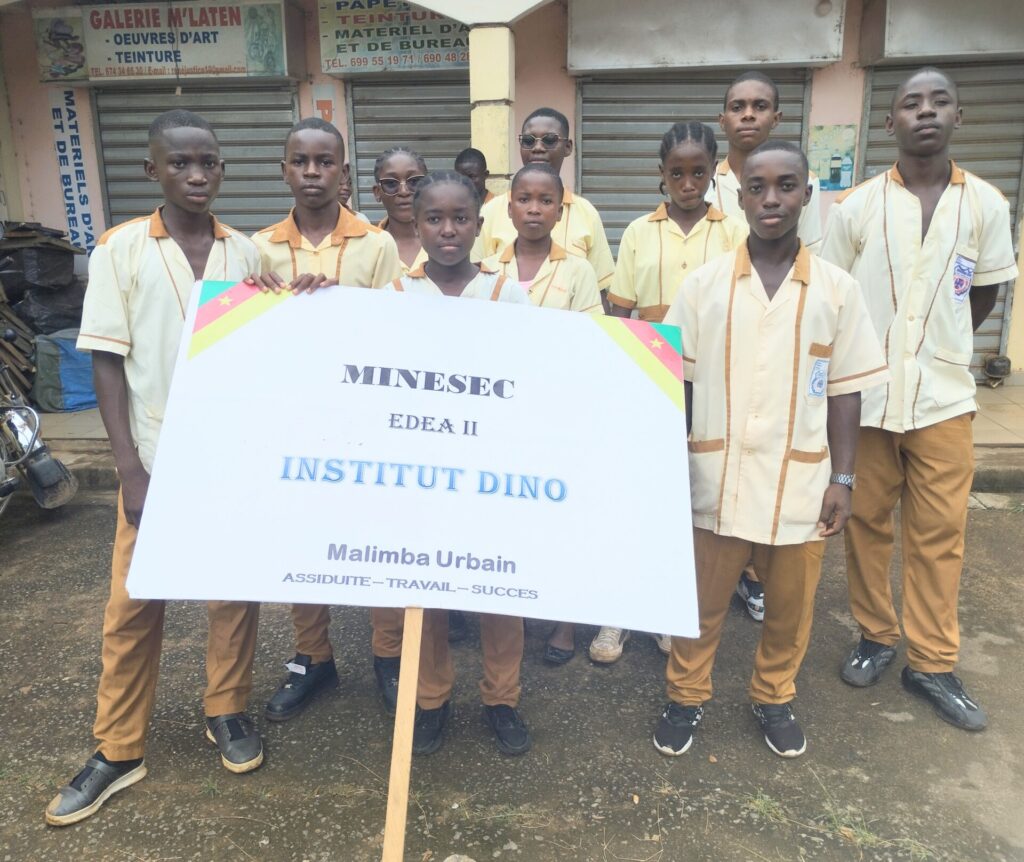 Les Encadreurs et l’administration emboîtèrent le pas aux apprenants ci-dessous avec la présence remarquée de Mr Fils Samuel BISSE Principal de l’institut DINO venu encourager ses troupes.