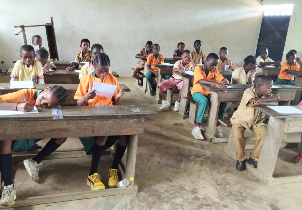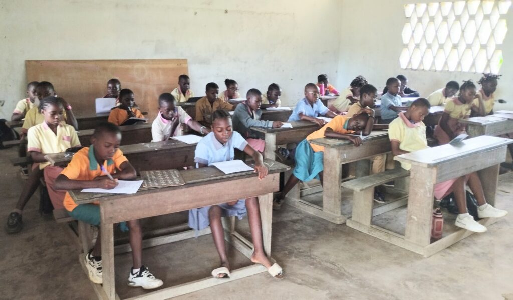 Après l’accueil des candidats et la cérémonie de levée des couleurs, l’installation dans les trois salles de classes apprêtées par ordre alphabétique s’en suivront les épreuves de dictée, étude de texte et autres.